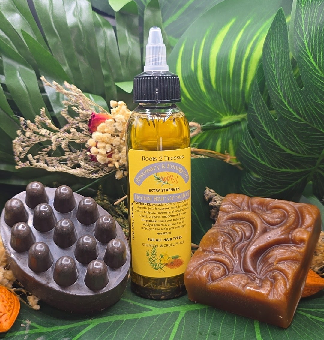 • Herbal Strengthening Oil – A potent blend of herbs and oils that promotes stronger, healthier hair while reducing breakage.